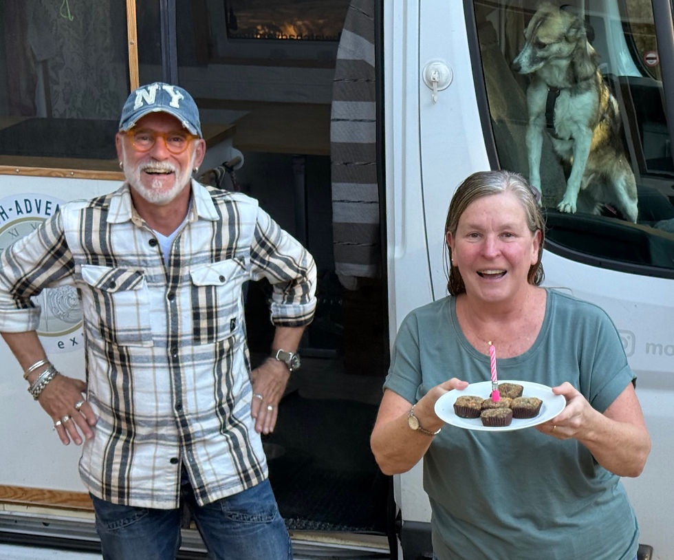 We're still in the Ziz Valley and our next stop is a place we've visited before, Camping Tissirt, a small, family-run site in a really nice village. What better place than this for Janette to wake up in on her birthday? Bernd has kindly baked (?) some cakes and even supplied an electronic candle that plays Happy Birthday - what more could a woman want?!