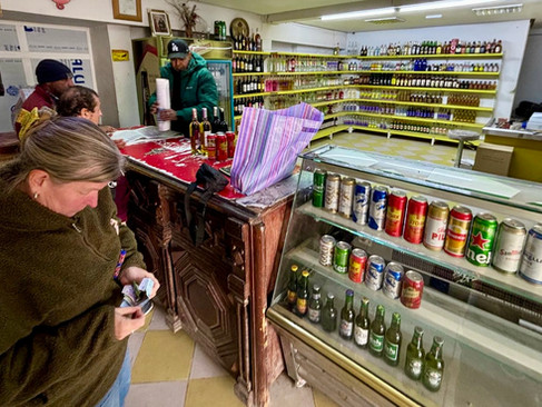 The next town is Midelt and we need to stop here to get supplies. Nick sees the cheapest fuel so far -79p a litre - so we stop to fill up! We could also do with some booze! You can buy alcohol in Morocco, but as a Muslim country, it's not widely available. Having googled the off licence in Midelt we find that it's an unmarked shop with a distinctly seedy feel to it - it's quite fun!
