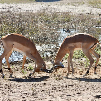We're all heading to Sinyati Camp with its popular waterhole where we spent a night before crossing to Zimbabwe. We're staying for three nights . Tomorrow Chris and Janet will collect their vehicle and we'll all stock up on supplies in Kasane.