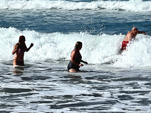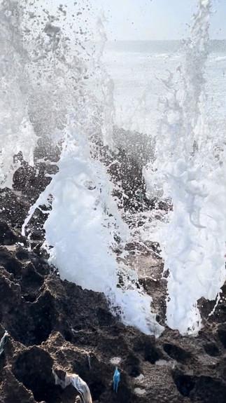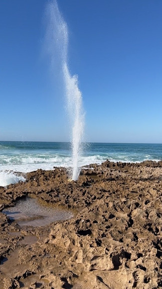 We walk along the beach today in the opposite direction where it is rocky and where we find some blow holes where the sea bursts through in huge jets with amazing force.